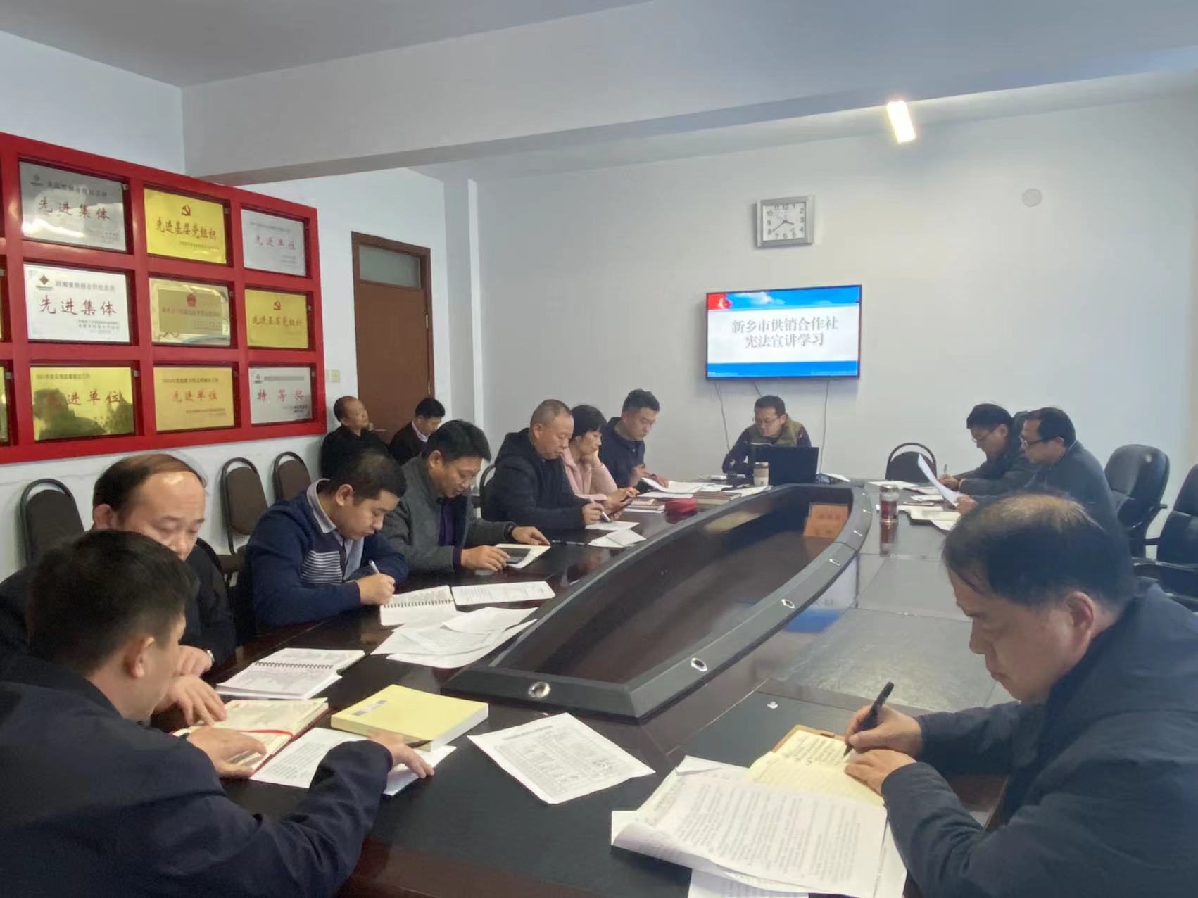 为全面贯彻落实习近平新时代中国特色社会主义思想和党的十九大精神,深入开展法制宣传教育活动,大力弘扬宪法精神,营造弘扬社会主义法治精神的良好氛围。12月7日,新乡市供销合作社组织宪法宣讲学习,集中学习了魏建平市长12月4日宪法日在《新乡日报》发表的署名文章《坚持依宪施政 建设法治政府 为全面建设社会主义现代化新乡提供法治保障》。会议由新乡市供销合作社党组成员、监事会主任王善元主持,市供销合作社全体成员参加会议。